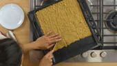 - Plech potřeme trochu oleje, rozprostřeme na něj polentovou kaši a zapečeme libovolně dlouho.