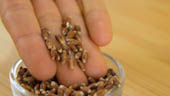 - Jáhly se semínky uvaříme ve třech šálcích vody 30 minut na mírném plameni s rozptylkou spolu s rovnou moka lžičkou soli.